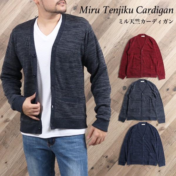 カーディガン メンズ 薄手 ニット ミル天竺 カーデ ニットカーディガン